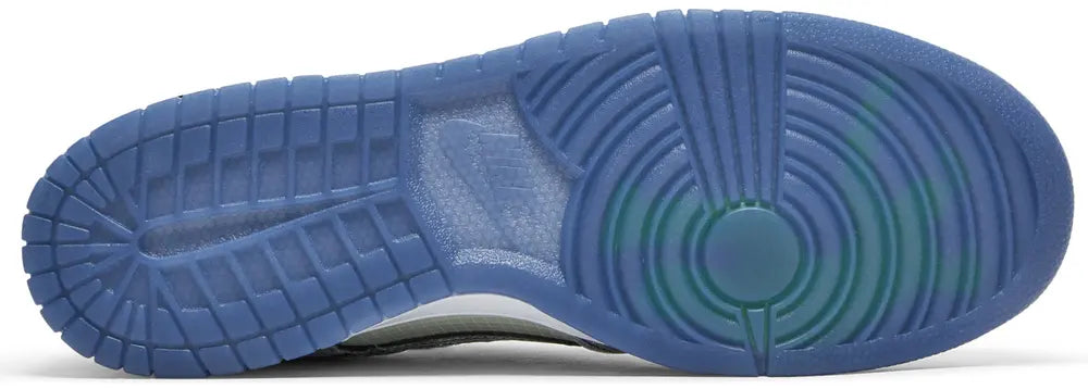Drawing inspiration from passports and government documentation, the Nike Dunk Low Union Passport Pack Pistachio features a light green and navy leather upper that is shrouded in a semi-translucent ripstop nylon.